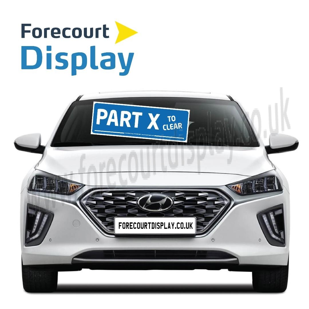 These "Part X" lightweight plastic signs are a great cost effective way to advertise your vehicles on your forecourt, they are easy to fit between the sunvisor & the dashboard.